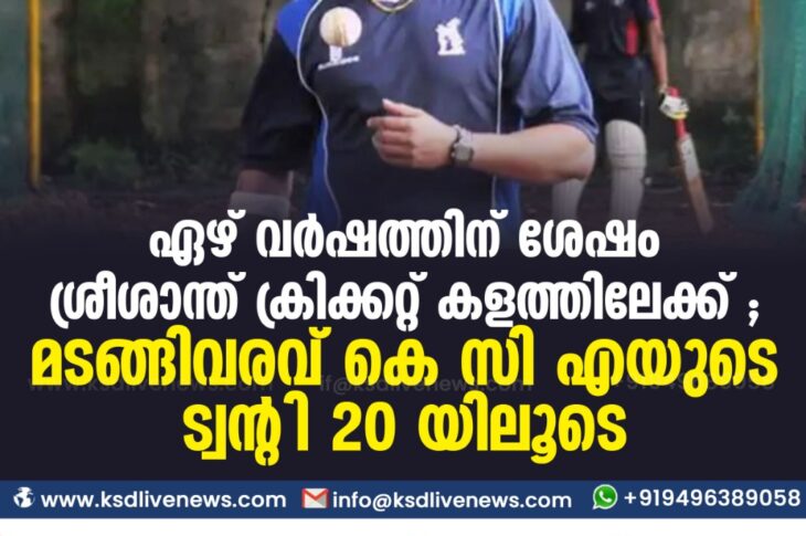 കായികം ഏഴ് വർഷത്തിന് ശേഷം ശ്രീശാന്ത് ക്രിക്കറ്റ് കളത്തിലേക്ക് ; മടങ്ങിവരവ് കെ സി എയുടെ ട്വന്റി 20 യിലൂടെNovember 26, 2020