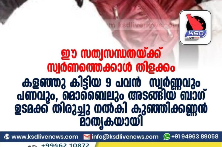 പ്രാദേശികം ഈ സത്യസന്ധതയ്ക്ക് സ്വർണത്തെക്കാൾ തിളക്കംകളഞ്ഞു കിട്ടിയ 9 പവൻ സ്വർണ്ണവും പണവും, മൊബൈലും അടങ്ങിയ ബാഗ് ഉടമക്ക് തിരുച്ചു നൽകി കുഞ്ഞിക്കണ്ണൻ മാതൃകയായിNovember 2, 2020