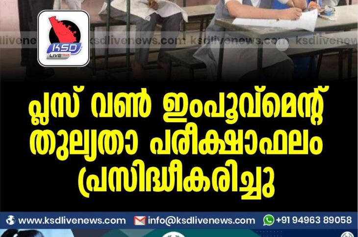 പ്ലസ് വൺ ഇംപൂവ്മെന്റ് തുല്യതാ പരീക്ഷാഫലം പ്രസിദ്ധീകരിച്ചു