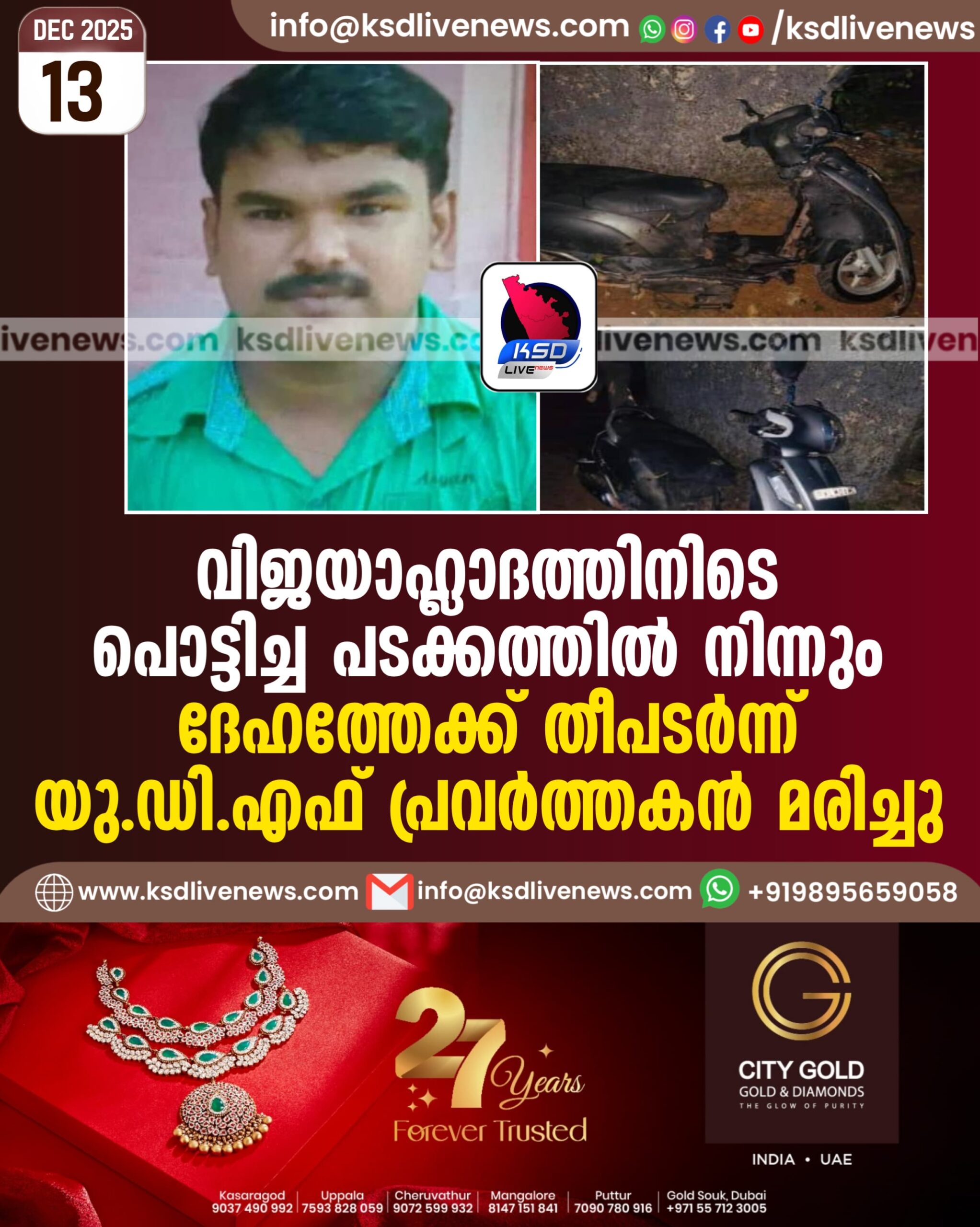 വിജയാഹ്ലാദത്തിനിടെ പൊട്ടിച്ച പടക്കത്തില് നിന്നും ദേഹത്തേക്ക് തീപടര്ന്ന് യു.ഡി.എഫ് പ്രവര്ത്തകന് മരിച്ചു