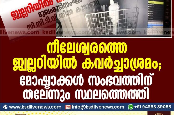 പ്രാദേശികം നീലേശ്വരത്തെ ജ്വല്ലറിയില് കവർച്ചാശ്രമം ; മോഷ്ടാക്കൾ സംഭവത്തിന് തലേന്നും സ്ഥലത്തെത്തി.November 11, 2020