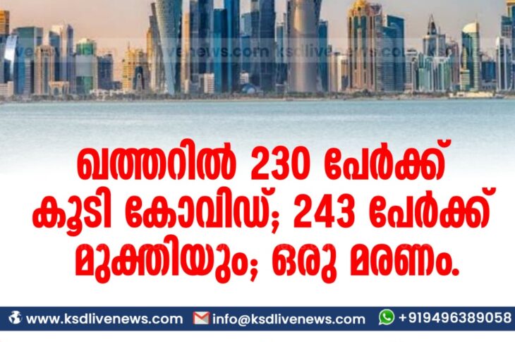 കോവിഡ് 19ഗൾഫ് ഖത്തറില് 230 പേര്ക്ക് കൂടി കോവിഡ് ; 243 പേർക്ക് മുക്തിയും ; ഒരു മരണം.November 10, 2020
