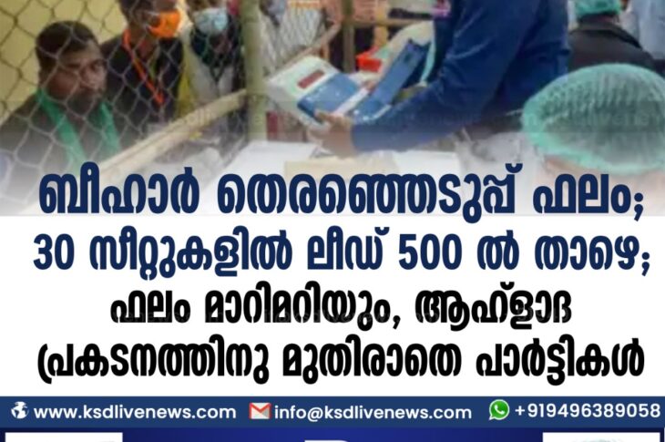 ദേശീയം ബീഹാർ തെരഞ്ഞെടുപ്പ് ഫലം ; 30 സീറ്റുകളില് ലീഡ് 500 ൽ താഴെ ; ഫലം മാറിമറിയും, ആഹ്ളാദ പ്രകടനത്തിനു മുതിരാതെ പാര്ട്ടികള്November 10, 2020