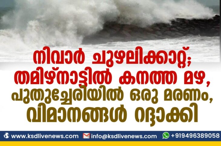 ദേശീയം നിവാർ ചുഴലിക്കാറ്റ് ; തമിഴ്നാട്ടിൽ കനത്ത മഴ , പുതുച്ചേരിയിൽ ഒരു മരണം , വിമാനങ്ങൾ റദ്ദാക്കിNovember 24, 2020