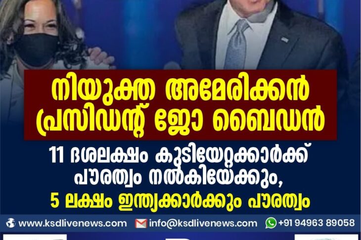 വിദേശം നിയുക്ത അമേരിക്കൻ പ്രസിഡന്റ് ജോ ബൈഡൻ : 11 ദശലക്ഷം കുടിയേറ്റക്കാർക്ക് പൗരത്വം നൽകിയേക്കും , 5 ലക്ഷം ഇന്ത്യക്കാർക്കും പൗരത്വംNovember 9, 2020