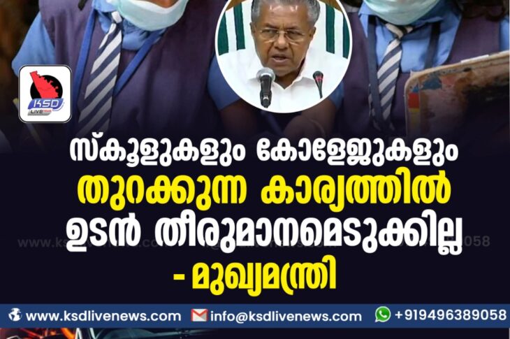 കേരളം സ്കൂളുകളും കോളേജുകളും തുറക്കുന്ന കാര്യത്തില് ഉടന് തീരുമാനമെടുക്കില്ല – മുഖ്യമന്ത്രിNovember 24, 2020