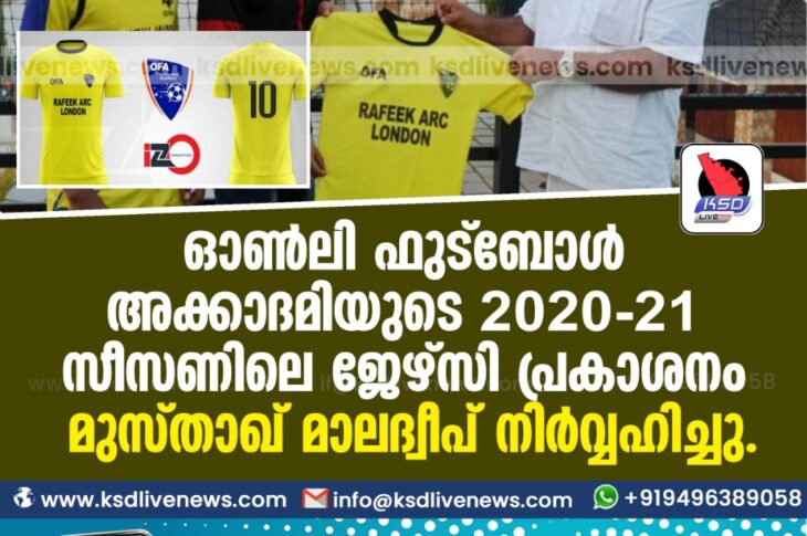 കേരളം ഓൺലി ഫുട്ബോൾ അക്കാദമി യുടെ 2020-21 സീസണിലെ ജേഴ്സി പ്രകാശനം മുസ്താഖ് മാലദ്വീപ് നിർവ്വഹിച്ചു.November 24, 2020