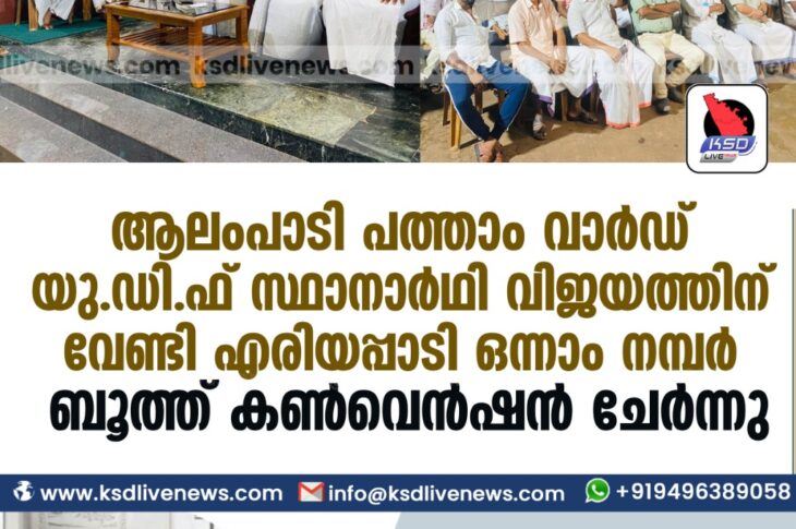 പ്രാദേശികം ആലംപാടി പത്താം വാർഡ് യു.ഡി.ഫ് സ്ഥാനാർഥി-വിജയത്തിന് വേണ്ടി എരിയപ്പാടി ഒന്നാം നമ്പർ ബൂത്ത് കൺവെൻഷൻ ചേർന്നുNovember 24, 2020