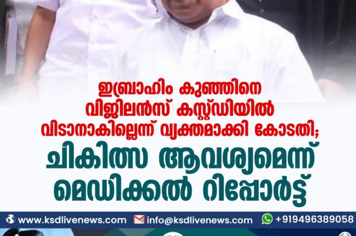 കേരളം ഇബ്രാഹിം കുഞ്ഞിനെ വിജിലൻസ് കസ്റ്റ്ഡിയിൽ വിടാനാകില്ലെന്ന് വ്യക്തമാക്കി കോടതി ; ചികിത്സ ആവശ്യമെന്ന് മെഡിക്കൽ റിപ്പോർട്ട്November 24, 2020