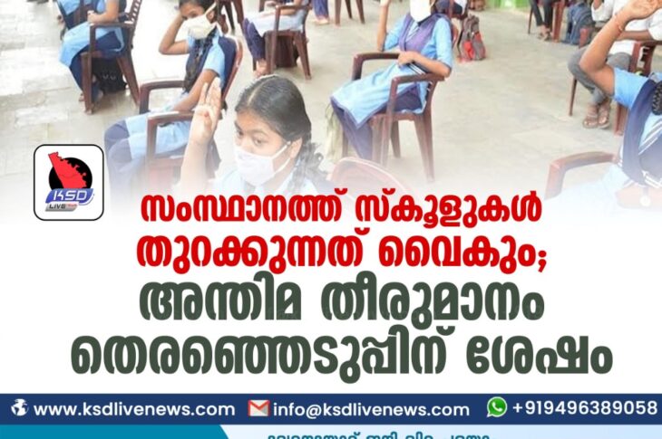 കേരളം സംസ്ഥാനത്ത് സ്കൂളുകൾ തുറക്കുന്നത് വൈകും ; അന്തിമ തീരുമാനം തെരഞ്ഞെടുപ്പിന് ശേഷംNovember 24, 2020
