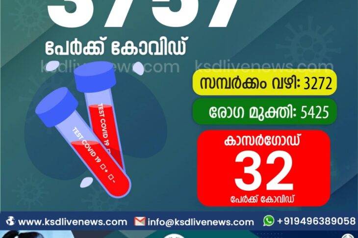 കേരളംകോവിഡ് 19 സംസ്ഥാനത്ത് ഇന്ന് 3757 പേർക്ക് കോവിഡ് സ്ഥിരീകരിച്ചു. സമ്പർക്കം വഴി 3272 പേർക്കും ; ആശ്വാസമായി 5425 പേർക്ക് രോഗ മുക്തിയും ; കാസർഗോഡ് ജില്ലയിൽ 32 പേർക്ക് പുതിയ കോവിഡ് കേസുകൾ ; മരണം 22November 23, 2020