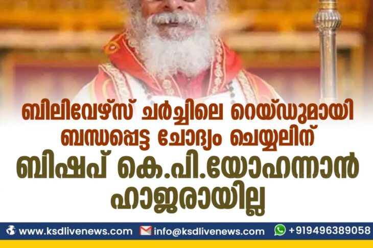 കേരളം ബിലിവേഴ്സ് ചർച്ചിലെ റെയ്ഡുമായി ബന്ധപ്പെട്ട ചോദ്യം ചെയ്യലിന് ബിഷപ് കെ.പി.യോഹന്നാൻ ഹാജരായില്ലNovember 23, 2020