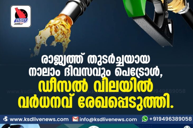 ദേശീയം രാജ്യത്ത് തുടർച്ചയായ നാലാം ദിവസവും പെട്രോൾ , ഡീസൽ വിലയിൽ വർധനവ് രേഖപ്പെടുത്തി .November 23, 2020