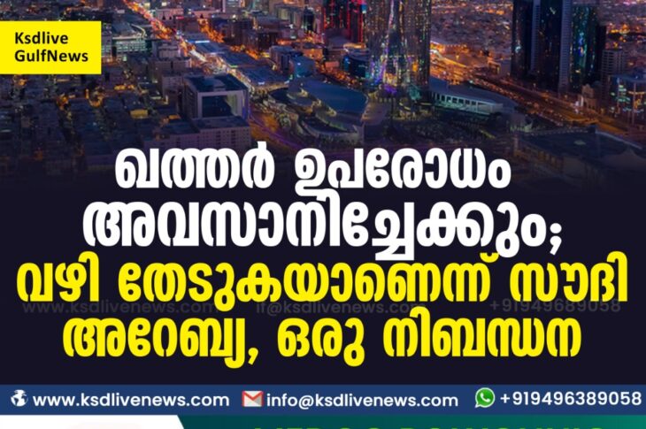 കേരളംവിദേശം ഖത്തർ ഉപരോധം അവസാനിച്ചേക്കും ; വഴി തേടുകയാണെന്ന് സൗദി അറേബ്യ , ഒരു നിബന്ധനNovember 22, 2020