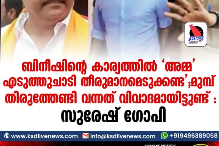 കേരളം ബിനീഷിന്റെ കാര്യത്തിൽ ‘ അമ്മ ‘ എടുത്തുചാടി തീരുമാനമെടുക്കണ്ട ‘ ; മുമ്പ് തിരുത്തേണ്ടി വന്നത് വിവാദമായിട്ടുണ്ട് : സുരേഷ് ഗോപിNovember 22, 2020