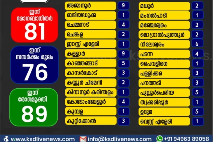 കാസർഗോഡ്കോവിഡ് 19 കാസർഗോഡ് ജില്ലയിൽ ഇന്ന് കോവിഡ് പോസിറ്റീവായവരുടെ പഞ്ചായത്ത് തിരിച്ചുള്ള സ്ഥിതി വിവര കണക്ക്November 22, 2020