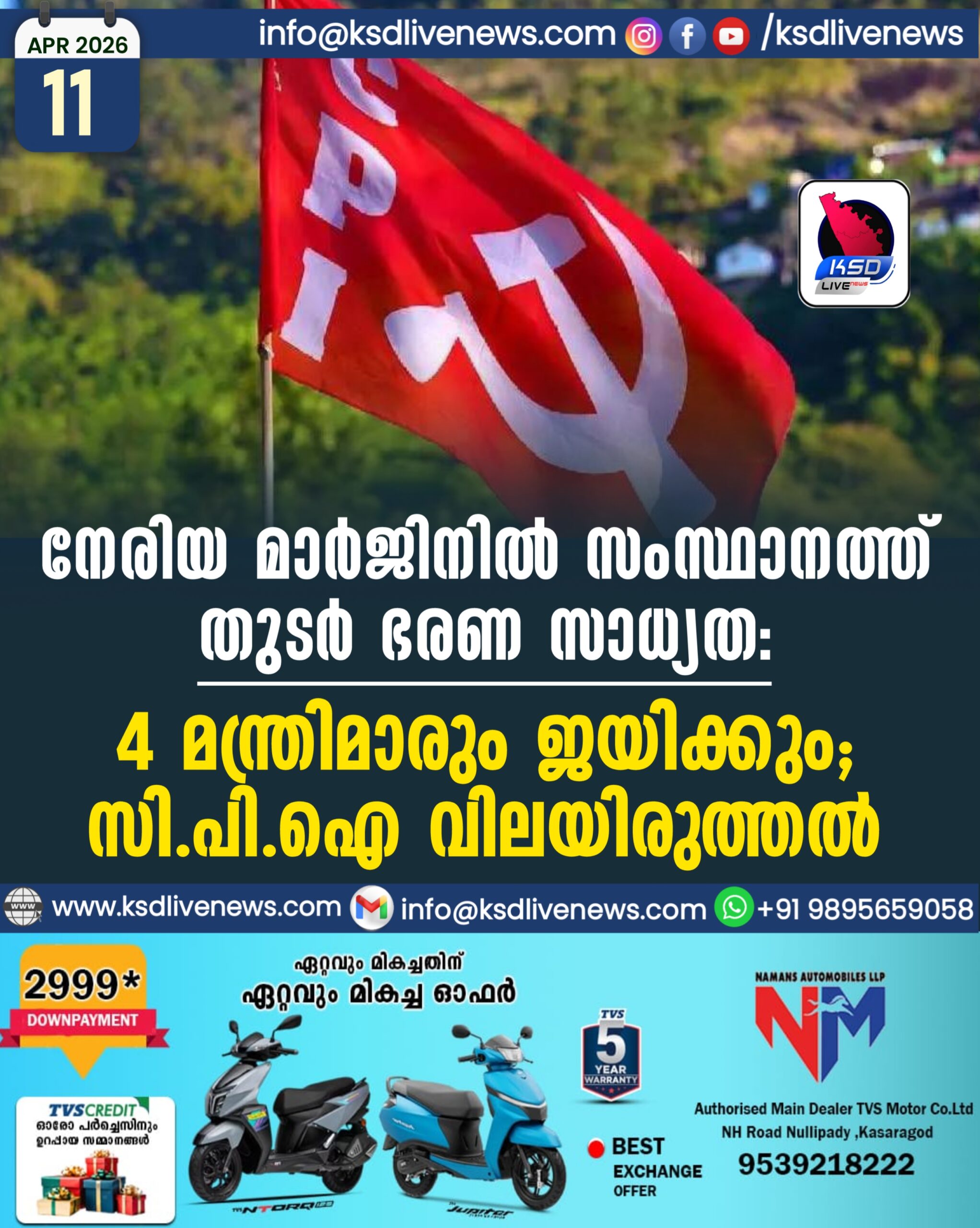 നേരിയ മാർജിനിൽ സംസ്ഥാനത്ത് തുടർ ഭരണ സാധ്യത; 4 മന്ത്രിമാരും ജയിക്കും, CPI വിലയിരുത്തൽ