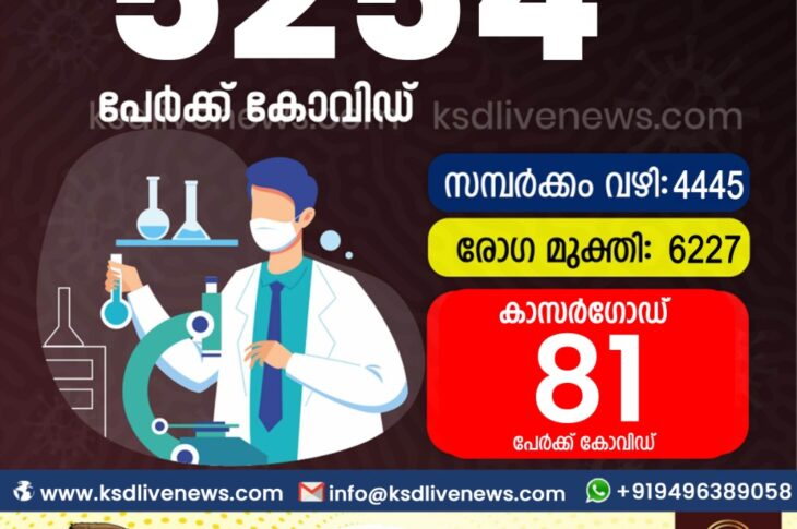 കേരളംകോവിഡ് 19 സംസ്ഥാനത്ത് ഇന്ന് 5254 പേർക്ക് കോവിഡ് സ്ഥിരീകരിച്ചു. സമ്പർക്കം വഴി 4445 പേർക്കും ; ആശ്വാസമായി 6227 പേർക്ക് രോഗ മുക്തിയും ; കാസർഗോഡ് ജില്ലയിൽ 81 പേർക്ക് പുതിയ കോവിഡ് കേസുകൾ ; മരണം 27November 22, 2020