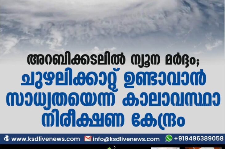 കേരളം അറബിക്കടലിൽ ന്യൂന മർദ്ദം ; ചുഴലിക്കാറ്റ് ഉണ്ടാവാൻ സാധ്യതയെന്ന് കാലാവസ്ഥാ നിരീക്ഷണ കേന്ദ്രംNovember 22, 2020