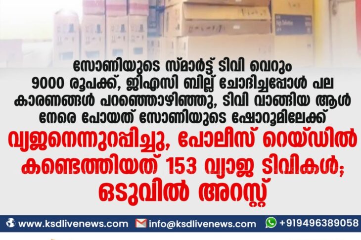 ദേശീയം സോണിയുടെ സ്മാർട്ട് ടിവി വെറും 9000 രൂപക്ക് ; ജിഎസ്ടി ബില്ല് ചോദിച്ചപ്പോൾ പല കാരണങ്ങൾ പറഞ്ഞൊഴിഞ്ഞു ; പോലീസ് റെയ്ഡിൽ കണ്ടെത്തിയത് 153 വ്യാജ ടിവികൾ ; ഒടുവിൽ അറസ്റ്റ്November 22, 2020