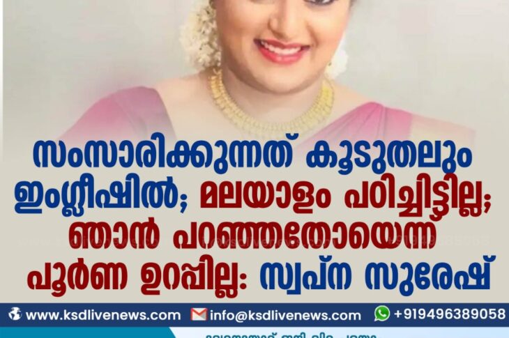 കേരളം സംസാരിക്കുന്നത് കൂടുതലും ഇംഗ്ലീഷിൽ ; മലയാളം പഠിച്ചിട്ടില്ല ; ഞാൻ പറഞ്ഞതോയെന്ന് പൂർണ ഉറപ്പില്ല : സ്വപ്ന സുരേഷ്November 20, 2020