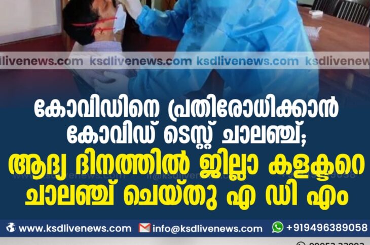 കാസർഗോഡ് കോവിഡിനെ പ്രതിരോധിക്കാന് കോവിഡ് ടെസ്റ്റ് ചാലഞ്ച്; ആദ്യ ദിനത്തിൽ ജില്ലാ കളക്ടറെ ചാലഞ്ച് ചെയ്തുNovember 19, 2020