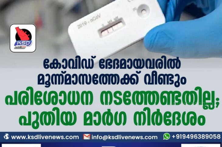 കേരളം കോവിഡ് ഭേദമായവരിൽ മൂന്ന് മാസത്തേക്ക് വീണ്ടും പരിശോധന നടത്തേണ്ടതില്ല ; പുതിയ മാർഗ നിർദേശംNovember 19, 2020