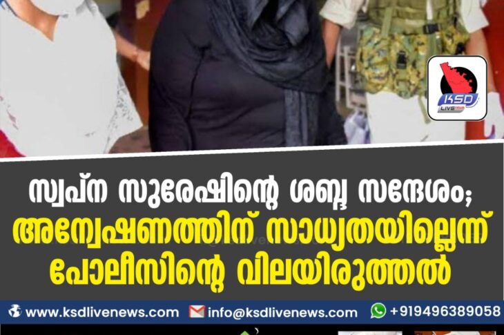 കേരളം സ്വപ്ന സുരേഷിന്റെ ശബ്ദ സന്ദേശം;അന്വേഷണത്തിന് സാധ്യതയില്ലെന്ന് പോലീസിന്റെ വിലയിരുത്തല്November 19, 2020