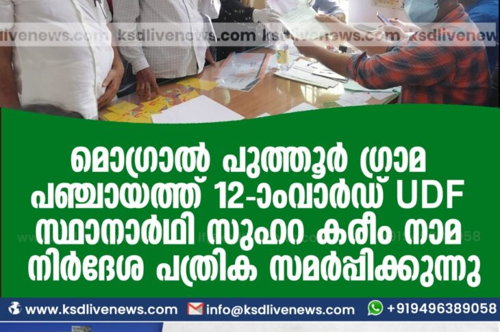 പ്രാദേശികം മൊഗ്രാൽ പുത്തൂർ ഗ്രാമ പഞ്ചായത്ത് 12-ാംവാർഡ് UDF സ്ഥാനാർഥി സുഹറ കരീം വരണാധികാരിക്ക് മുമ്പാകെ നാമനിർദേശക പത്രിക സമർപ്പിക്കുന്നുNovember 19, 2020