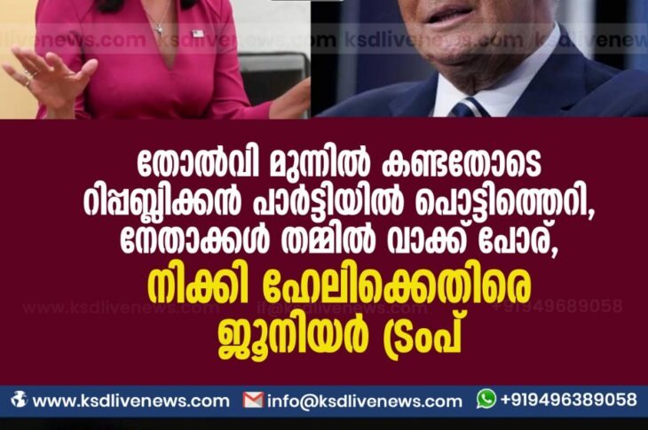 വിദേശം തോൽവി മുന്നിൽ കണ്ടതോടെ റിപ്പബ്ലിക്കൻ പാർട്ടിയിൽ പൊട്ടിത്തെറി , നേതാക്കൾ തമ്മിൽ വാക്ക് പോര് , നിക്കി ഹേലിക്കെതിരെ ജൂനിയർ ട്രംപ്November 6, 2020