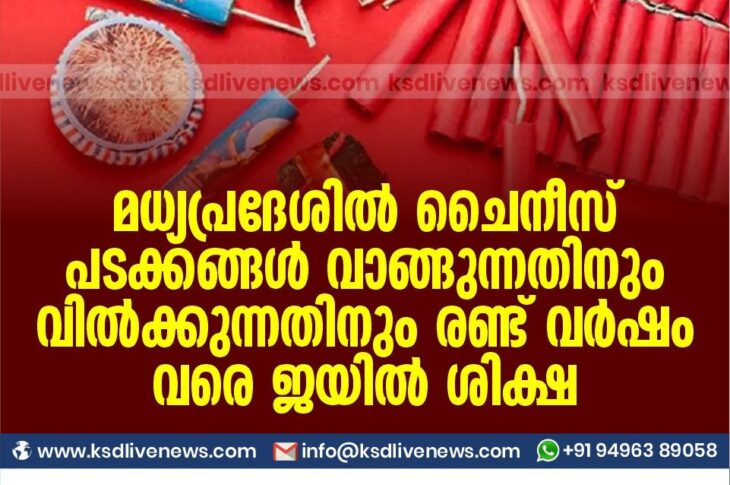 ദേശീയം മധ്യപ്രദേശിൽ ചൈനീസ് പടക്കങ്ങൾ വാങ്ങുന്നതിനും വിൽക്കുന്നതിനും രണ്ട് വർഷം വരെ ജയിൽ ശിക്ഷNovember 6, 2020