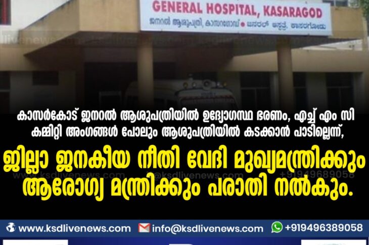 കാസർഗോഡ് കാസർകോട് ജനറൽ ആശുപത്രിയിൽ ഉദ്യോഗസ്ഥ ഭരണം, എച്ച് എം സി കമ്മിറ്റി അംഗങ്ങൾ പോലും ആശുപത്രിയിൽ കടക്കാൻ പാടില്ലെന്ന്,ജില്ലാ ജനകീയ നീതി വേദി മുഖ്യമന്ത്രിക്കും ആരോഗ്യ മന്ത്രിക്കും പരാതി നൽകും.November 4, 2020