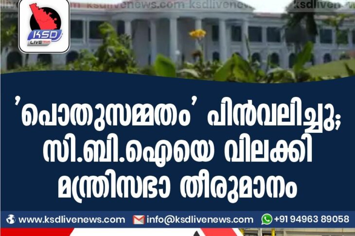 ‘പൊതുസമ്മതം’ പിന്വലിച്ചു; സി.ബി.ഐയെ വിലക്കി മന്ത്രിസഭാ തീരുമാനം