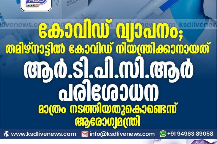 ദേശീയം കോവിഡ് വ്യാപനം ; തമിഴ്നാട്ടിൽ കോവിഡ് നിയന്ത്രിക്കാനായത് ആർ.ടി.പി.സി.ആർ. പരിശോധന മാത്രം നടത്തിയതുകൊണ്ടെന്ന് ആരോഗ്യമന്ത്രിNovember 4, 2020