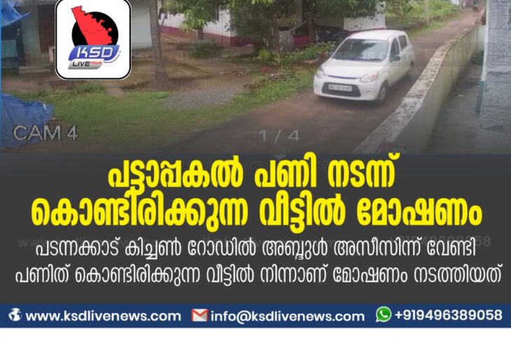 പ്രാദേശികം പട്ടാപ്പകൽ പണി നടന്ന് കൊണ്ടിരിക്കുന്ന വീട്ടിൽ മോഷണംപടന്നക്കാട് കിച്ചൺ റോഡിൽ അബ്ദുൾ അസീസിന്ന് വേണ്ടി പണിത് കൊണ്ടിരിക്കുന്ന വീട്ടിൽ നിന്നാണ് മോഷണം നടത്തിയത്November 3, 2020
