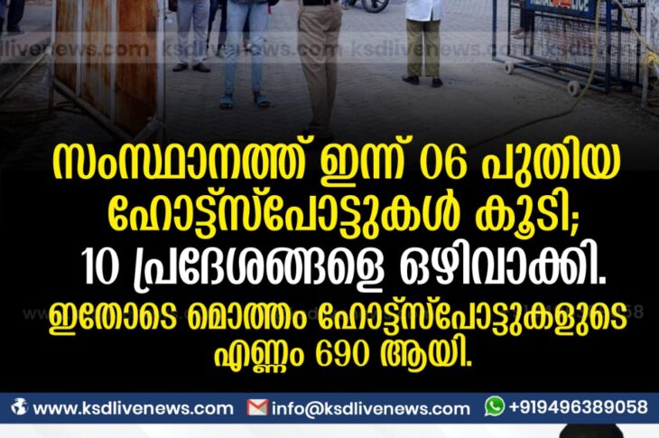 കേരളംകോവിഡ് 19 സംസ്ഥാനത്ത് ഇന്ന് 06 പുതിയ ഹോട്ട്സ്പോട്ടുകള് കൂടി; 10 പ്രദേശങ്ങളെ ഒഴിവാക്കി. ഇതോടെ മൊത്തം ഹോട്ട്സ്പോട്ടുകളുടെ എണ്ണം 690 ആയി.October 30, 2020