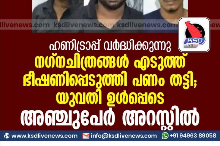 കേരളം ഹണിട്രാപ്പ് വർദ്ധിക്കുന്നുനഗ്നചിത്രങ്ങള് എടുത്ത് ഭീഷണിപ്പെടുത്തി പണം തട്ടി; യുവതി ഉള്പ്പെടെ അഞ്ചുപേര് അറസ്റ്റില്October 30, 2020
