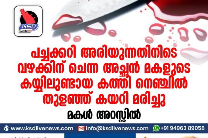 കേരളം പച്ചക്കറി അരിയുന്നതിനിടെ വഴക്കിന് ചെന്ന അച്ഛന് മകളുടെ കയ്യിലുണ്ടായ കത്തി നെഞ്ചിൽ തുളഞ്ഞ് കയറി മരിച്ചു : മകൾ അറസ്റ്റിൽOctober 29, 2020