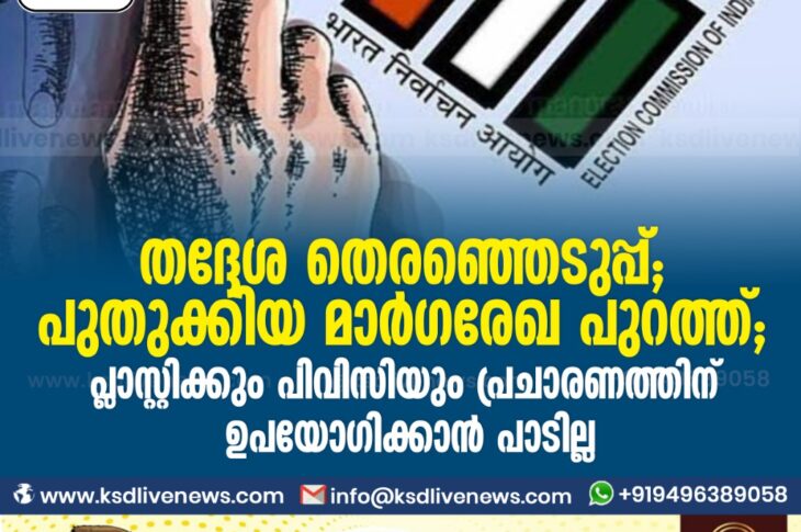 കേരളം തദ്ദേശ തെരഞ്ഞെടുപ്പ്; പുതുക്കിയ മാര്ഗരേഖ പുറത്ത്; പ്ലാസ്റ്റിക്കും പിവിസിയും പ്രചാരണത്തിന് ഉപയോഗിക്കാന് പാടില്ലOctober 28, 2020