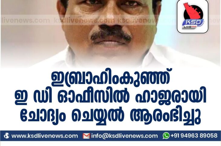 ഇബ്രാഹിംകുഞ്ഞ് ഇ ഡി ഓഫീസിൽ ഹാജരായി ; ചോദ്യം ചെയ്യൽ ആരംഭിച്ചു