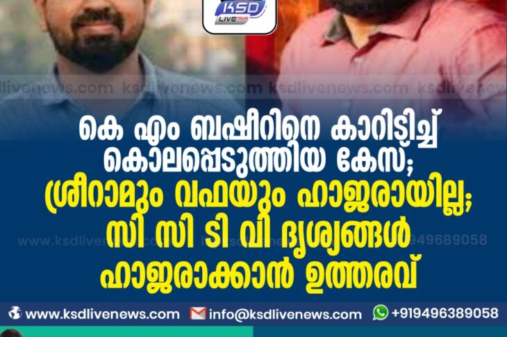 കേരളം കെ എം ബഷീറിനെ കാറിടിച്ച് കൊലപ്പെടുത്തിയ കേസ് ; ശ്രീറാമും വഫയും ഹാജരായില്ല ; സി സി ടി വി ദൃശ്യങ്ങള് ഹാജരാക്കാന് ഉത്തരവ്October 27, 2020