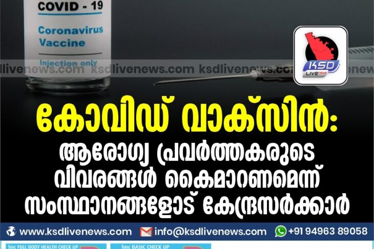 ദേശീയം കോവിഡ് വാക്സിൻ : ആരോഗ്യ പ്രവർത്തകരുടെ വിവരങ്ങൾ കൈമാറണമെന്ന് സംസ്ഥാനങ്ങളോട് കേന്ദ്രസർക്കാർOctober 24, 2020