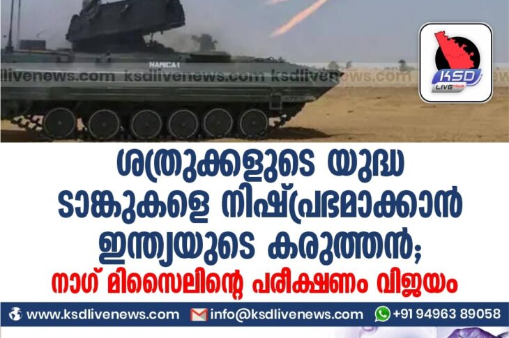 ദേശീയം ശത്രുക്കളുടെ യുദ്ധ ടാങ്കുകളെ നിഷ്പ്രഭമാക്കാൻ ഇന്ത്യയുടെ കരുത്തൻ ; നാഗ് മിസൈലിന്റെ പരീക്ഷണം വിജയംOctober 22, 2020