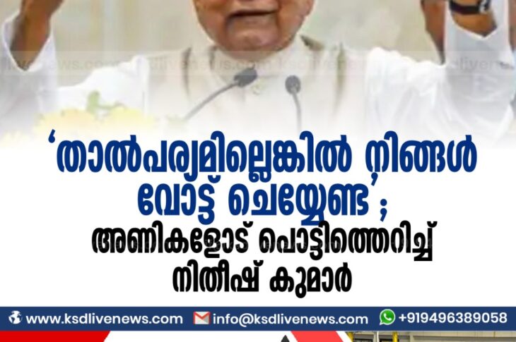 ദേശീയം താല്പര്യമില്ലെങ്കില് നിങ്ങള് വോട്ട് ചെയ്യേണ്ട’ ; അണികളോട് പൊട്ടിത്തെറിച്ച് നിതീഷ് കുമാര്October 21, 2020