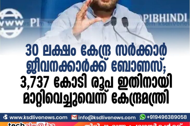 ദേശീയം 30 ലക്ഷം കേന്ദ്ര സർക്കാർ ജീവനക്കാർക്ക് ബോണസ്; 3,737 കോടി രൂപ ഇതിനായി മാറ്റിവെച്ചുവെന്ന് കേന്ദ്ര മന്ത്രിOctober 21, 2020