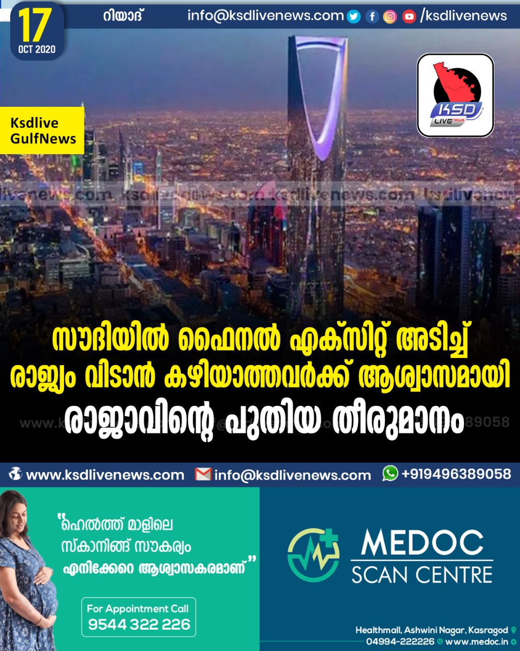 വിദേശം സൗദിയിൽ ഫൈനൽ എക്സിറ്റ് അടിച്ച് രാജ്യം വിടാൻ കഴിയാത്തവർക്ക് ആശ്വാസമായി രാജാവിന്റെ പുതിയ തീരുമാനംOctober 17, 2020