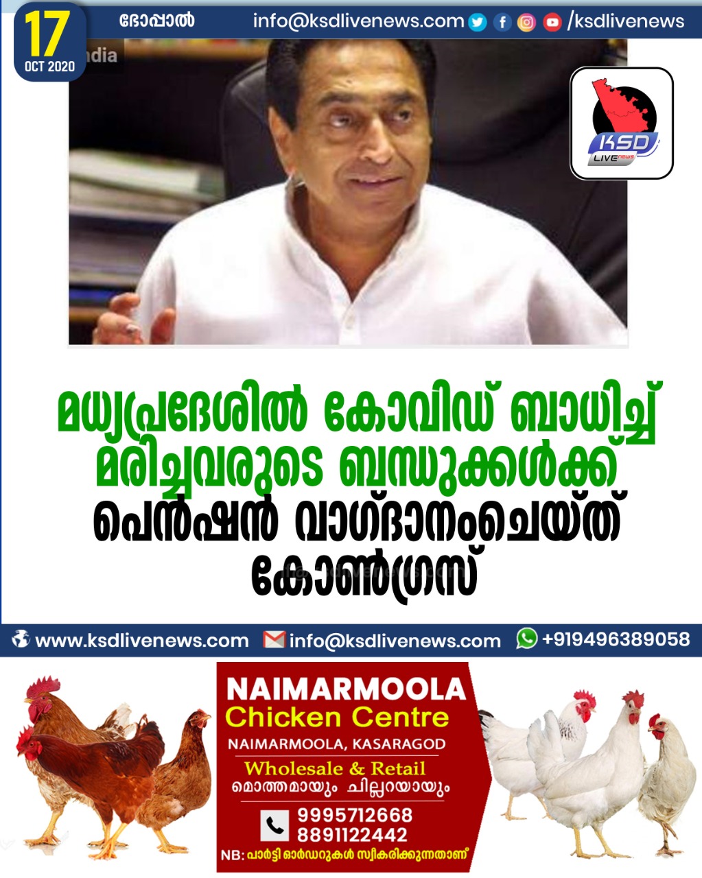 ദേശീയം മധ്യപ്രദേശില് കോവിഡ് ബാധിച്ച് മരിച്ചവരുടെ ബന്ധുക്കള്ക്ക് പെന്ഷന് വാഗ്ദാനംചെയ്ത് കോണ്ഗ്രസ്October 17, 2020