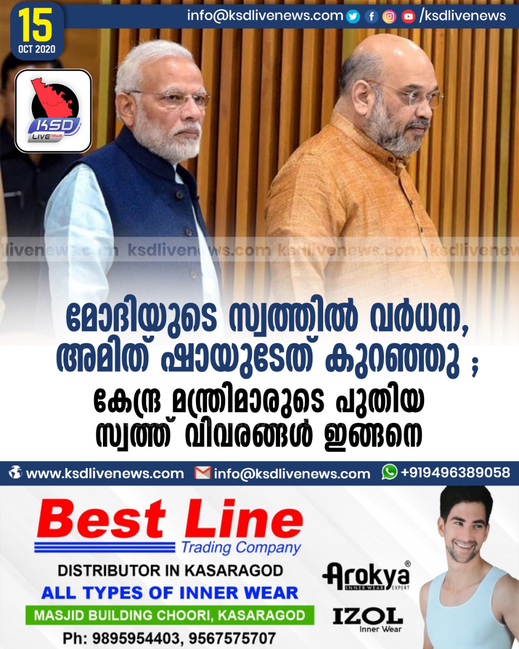 ദേശീയം മോദിയുടെ സ്വത്തിൽ വർധന, അമിത് ഷായുടേത് കുറഞ്ഞു ; കേന്ദ്ര മന്ത്രിമാരുടെ പുതിയ സ്വത്ത് വിവരങ്ങൾ ഇങ്ങനെOctober 15, 2020