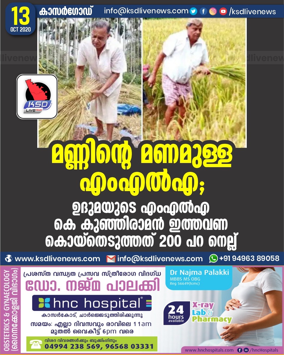 പ്രാദേശികം മണ്ണിന്റെ മണമുള്ള എംഎൽഎ ; ‘ഉദുമയുടെ എംഎൽഎ കെ കുഞ്ഞിരാമൻ ഇത്തവണ കൊയ്തെടുത്തത് 200 പറ നെല്ല്October 13, 2020