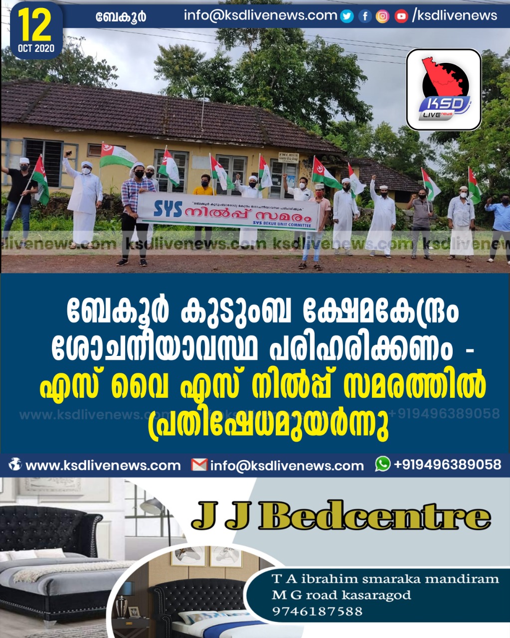 പ്രാദേശികം ബേകൂർ കുടുംബ ക്ഷേമകേന്ദ്രം ശോചനീയാവസ്ഥ പരിഹരിക്കണം – എസ് വൈ എസ് നിൽപ്പ് സമരത്തിൽ പ്രതിഷേധമുയർന്നുOctober 12, 2020